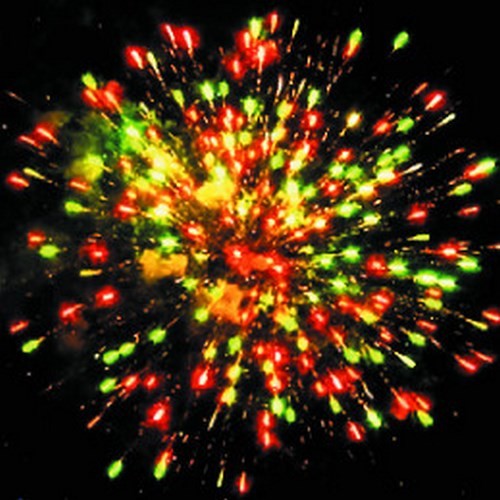 Красный кокос с белыми мерцающими стробами и серебристым треском. Листья зеленой пальмы и мерцающими витражными искрами, залпы трещащих пальм с серебряным дождем и лимонной волны. Спиральные хвосты дракона разрываются на яркие пионы. Пурпурные, синие и красные кокосы переходящие в парчовые пальмы и спиральные форсы.